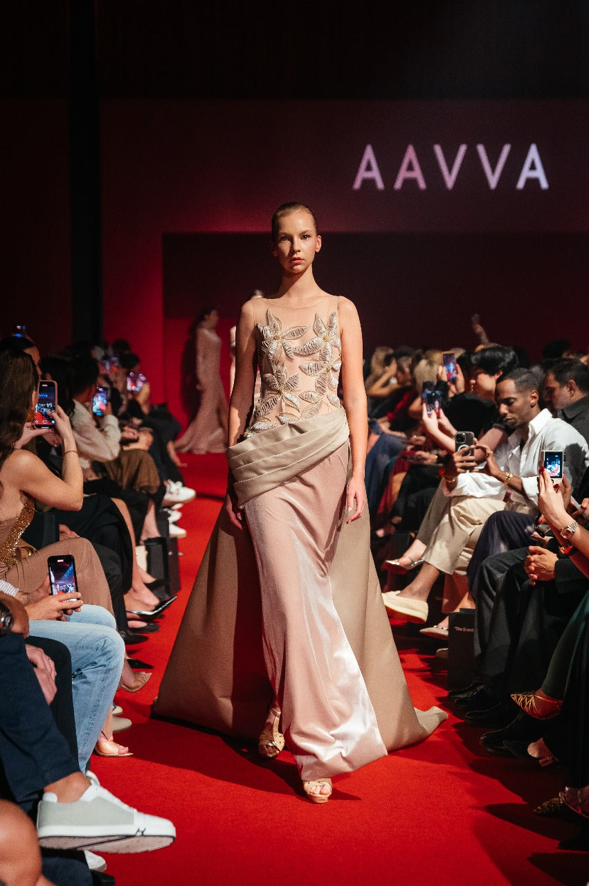 Sleeveless with 3D Embroidery Flowers on Top and velvet draping design with cape skirt